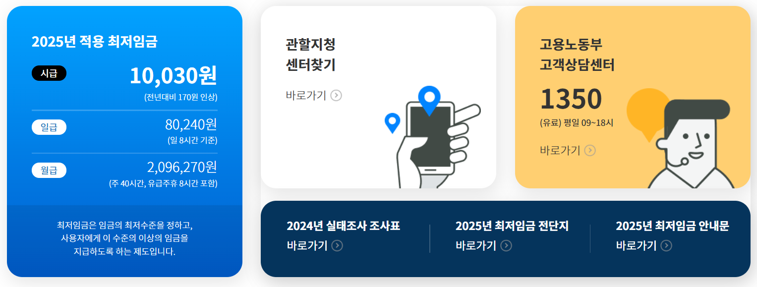 기준: 2025년 최저임금 시간당 10,030원, 주 5일 근무, 1일 8시간, 월 4.345주 기준 (209시간)
