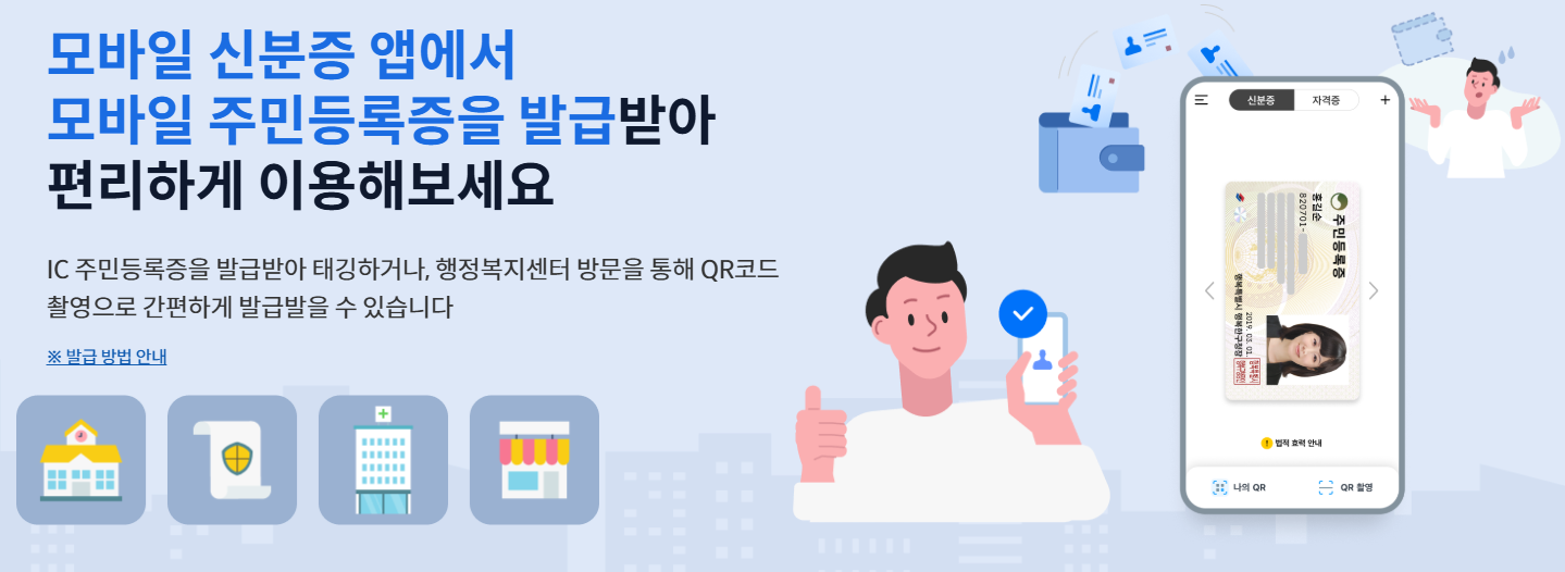 모바일 주민등록증은 행정복지센터(동사무소)를 방문하거나, 정부24 앱에서 본인 인증을 통해 발급받을 수 있습니다.