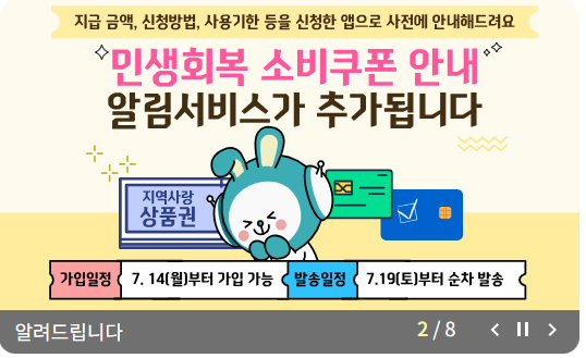 재난지원금, 에너지바우처, 청년지원금, 소상공인 지원금 등 중앙정부 및 지방자치단체의 다양한 지원금 정보도 실시간으로 확인할 수 있습니다.