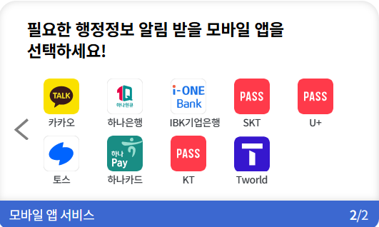 카카오톡, 네이버앱, 토스 등 주요 모바일 플랫폼과 연동하여, 알림을 보다 편리하게 받을 수 있습니다. 연동 설정은 누리집 내 ‘알림 채널 관리’ 메뉴에서 가능합니다.