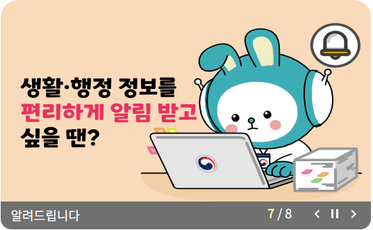 “내게 꼭 필요한 정보를, 필요한 순간에, 가장 편리한 방식으로 전달해주는 정부 서비스 플랫폼”입니다.
